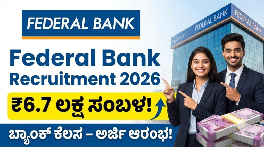 🏦 Federal Bank Recruitment 2026: ₹6.70 ಲಕ್ಷ ಸಂಬಳದ ಬ್ಯಾಂಕ್ ಉದ್ಯೋಗ! Graduation ಮಾಡಿದವರಿಗೆ ಭರ್ಜರಿ ಅವಕಾಶ ಭಾರತದಲ್ಲಿ ಖಾಸಗಿ ಬ್ಯಾಂಕಿಂಗ್ ಕ್ಷೇತ್ರದಲ್ಲಿ ಕೆಲಸ ಮಾಡಬೇಕು …